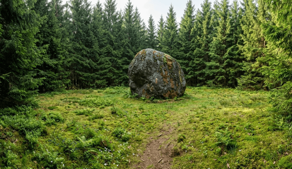 — Nie wiem — odparł Marcin. — Pewnie głaz narzutowy. Przywlekły go lodowce tysiące lat temu.